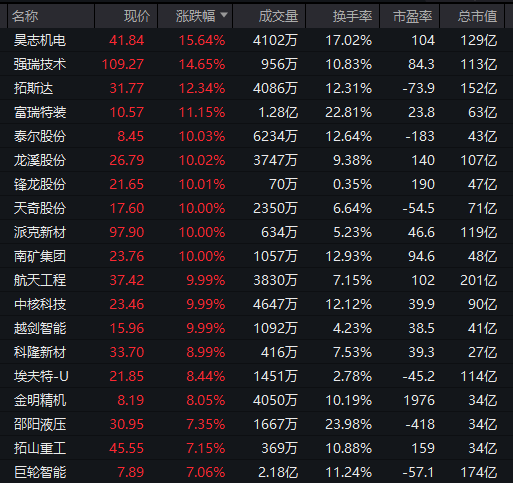 工业机械板块多股走强,泰尔股份、龙溪股份、派克新材等涨停。